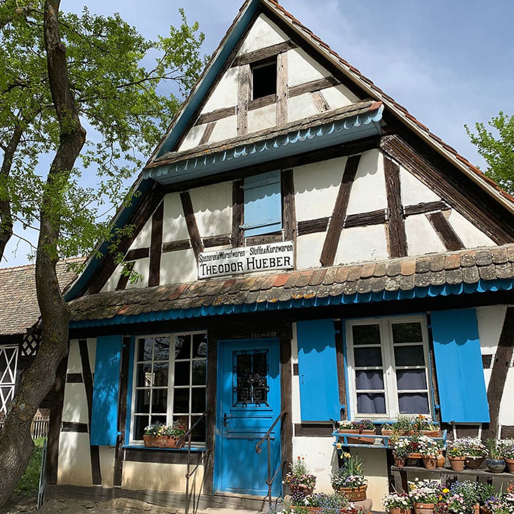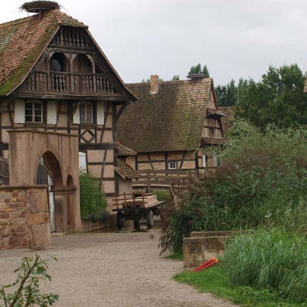 bâtisses alsaciennes, formant un village vivant : maisons à colombages, maisons d’ouvriers,